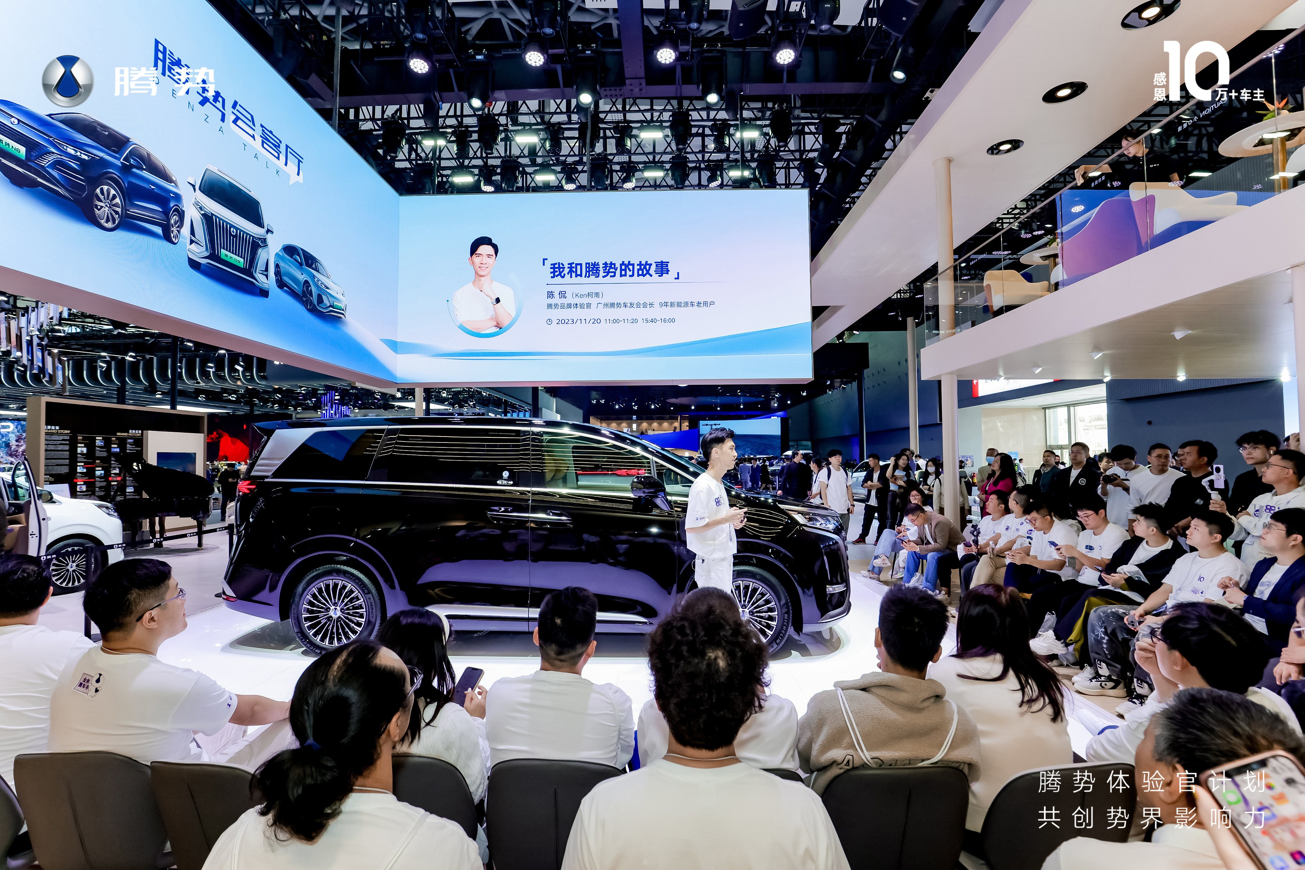 车展现场,腾势广州车友会会长陈侃,作为用户代表,分享了他的经历。作为腾势体验官,第一次参加共创活动是在2022年初,当时D9还没有公布。今年10月,又参加了腾势的微公益活动,去到云南腾冲边境小镇,进行图书捐赠。一路走来,非常喜欢腾势的品牌理念,从用户共创到全员公益,希望在车友会平台和体验官等多场活动中,通过交流创造更多价值。